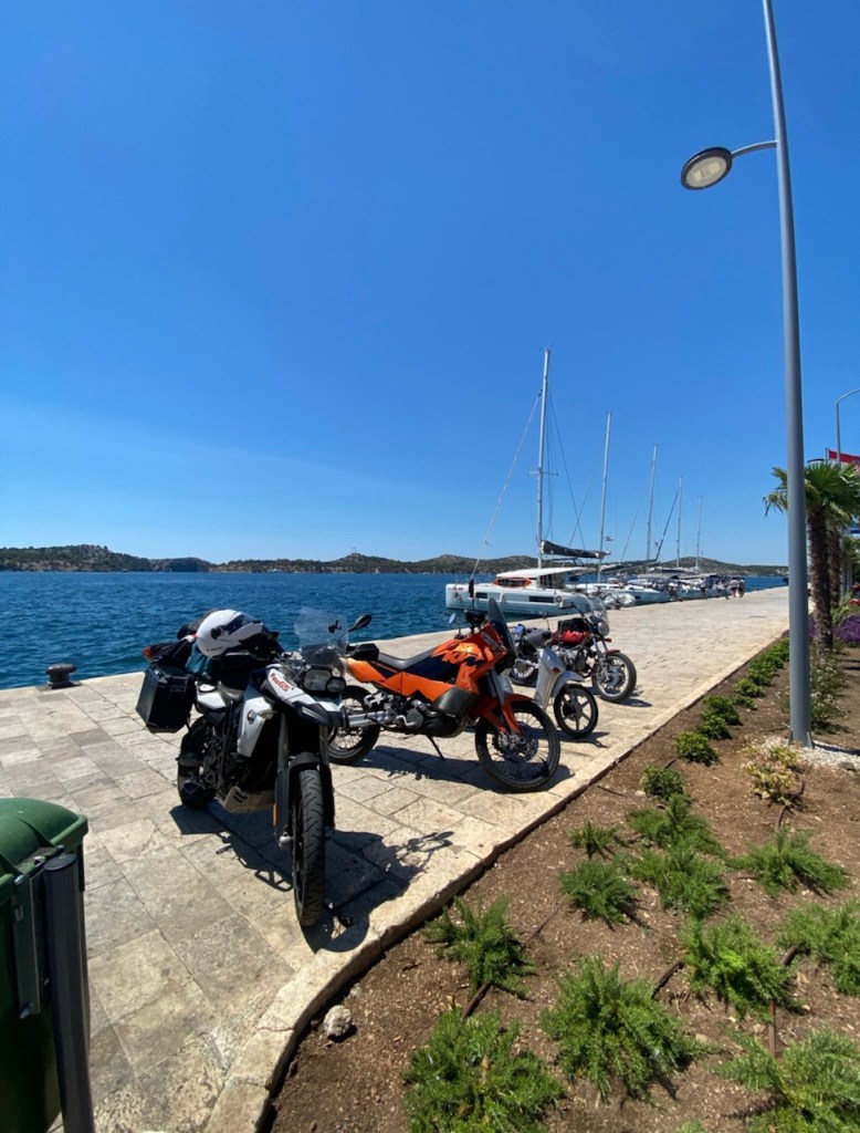 I eyed a town called Zadar and thought that would be my first stop. It’s only a couple hours away. This is about where I should tell you my first thought was why don’t I have my Nikon Camera?! On my first long ride to finland I carried it with me. It took some of the best pictures. Although phones have improved it’s nothing like an official camera. Either way here are some pics from this coastal portion of the ride. They won’t do it justice :(…..Croatia’s coast is beautiful!!!