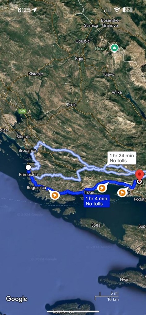 These ferry’s are pretty awesome and convenient considering I can wake up in a new country with my vehicle/transportation. I had a good nights sleep and woke up to the sound of the Captain speaking, saying we were an hour out. The thought of seeing a new country always gets me excited. I packed up and walked out to the deck and wasn’t disappointed. GOOD MORNING SPLIT, CROATIA!